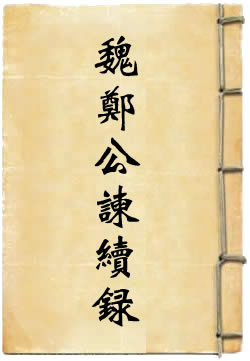 二卷。原书不具撰者姓名,《四库提要》考订其为元翟思忠所作。翟思忠生卒年及事迹均不详。史称魏徵前后进谏二百余事,然王方庆《魏郑公谏录》仅得130条。本书摭拾众说,以补王录之不足。其中间有与史传异同,且有实非谏诤之事而记录者。《四库全书》据《永乐大典》辑出,有《四库全书》本;《武英殿聚珍版书》本;《清芬堂丛书》(史部)本。此外,《畿辅丛书》、《丛书集成初编》(社会科学类)又有《魏郑公谏续录》一卷本。