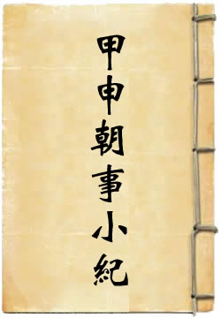 笔记。清王朝撰。一卷。作者原署江抱阳生撰。内容专记明崇祯、宏光两朝的宫闱秘闻、朝廷风俗、皇帝佚闻、大臣始末等。约一万三千字。于李自成农民起义军记载尤详。有些人物传记, 如《张献忠记》、《圆圆传》、《洪承畴纪略》、《郑成功纪略》等,