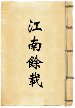 二卷。不著撰人名氏。《宋史·艺文志》的《霸史类》中载有此书。《直斋书录解题》载此书原序文称:“徐铉始奉诏为《江南录》,其后王举、路振、陈彭年、杨亿皆有书。大概六家皆不足以史称,而龙衮为尤甚。熙宁八年(1075年),得郑君所述于楚州,其史迹有六家所遗或小异者,删落是正,取百九十段以类相从。”据考证,郑君即郑文宝,而《江南余载》即以郑文宝《江表志》(三卷)为稿本。《江表志》现存只有二十四页,皆残缺掇拾,已非完书,《江南余载》一百九十五段虽不全见,但明代《永乐大典》中仍保存了两卷,对《江表志》所缺多有补充。