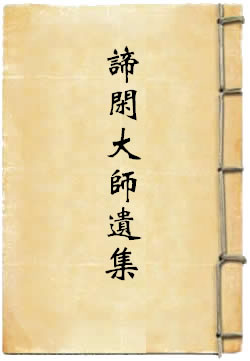 四明观宗寺谛闲大师著,嗣法门人湛山倓虚编订,优婆塞弟子(叶恭绰蒋维乔)参校,谛闲 : 浙江黄岩人。二十一岁出家。由天台山国清寺迹端授记付法,为天台宗第四十三世。应请在各丛林讲经,最后住持天台山万年寺。主办过南京僧师范学堂及宁波观宗学社(后改弘法研究社)。著有《教观纲宗讲义》、《大乘止观述记》、《金刚经新疏》、《圆觉经讲义》等,门人辑为《谛闲大师全集》行世。谛闲大师遗集共分五编。第一编经释,第二编观释,第三编论释,第四编忏释,第五编遗著、语录。